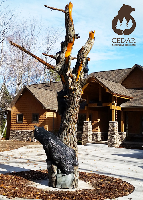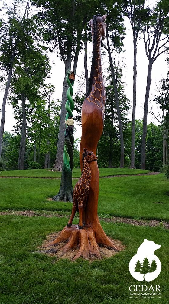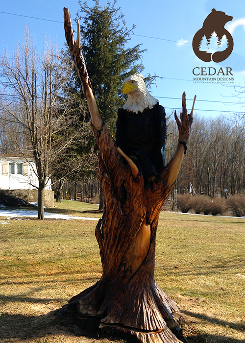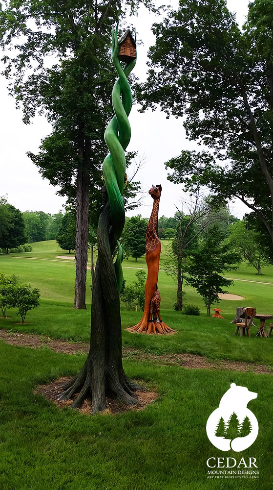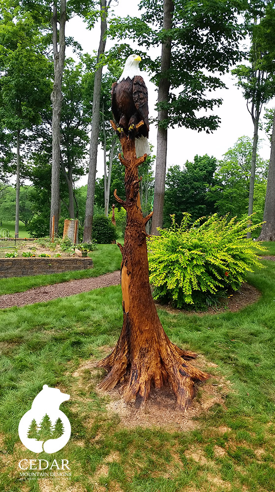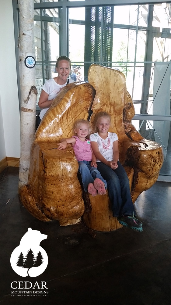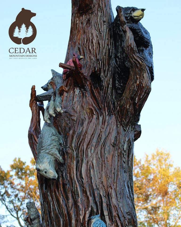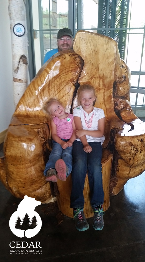 Welcome to Cedar Mountain Designs. Beginning with pure, natural wood, we transform raw timber into world-class, one-of-a-kind creations, using our chainsaws to bring these logs to life. Striving to work exclusively with naturally downed trees, our passion for our art is equaled by our passion for preserving the world around us—art that respects the land.