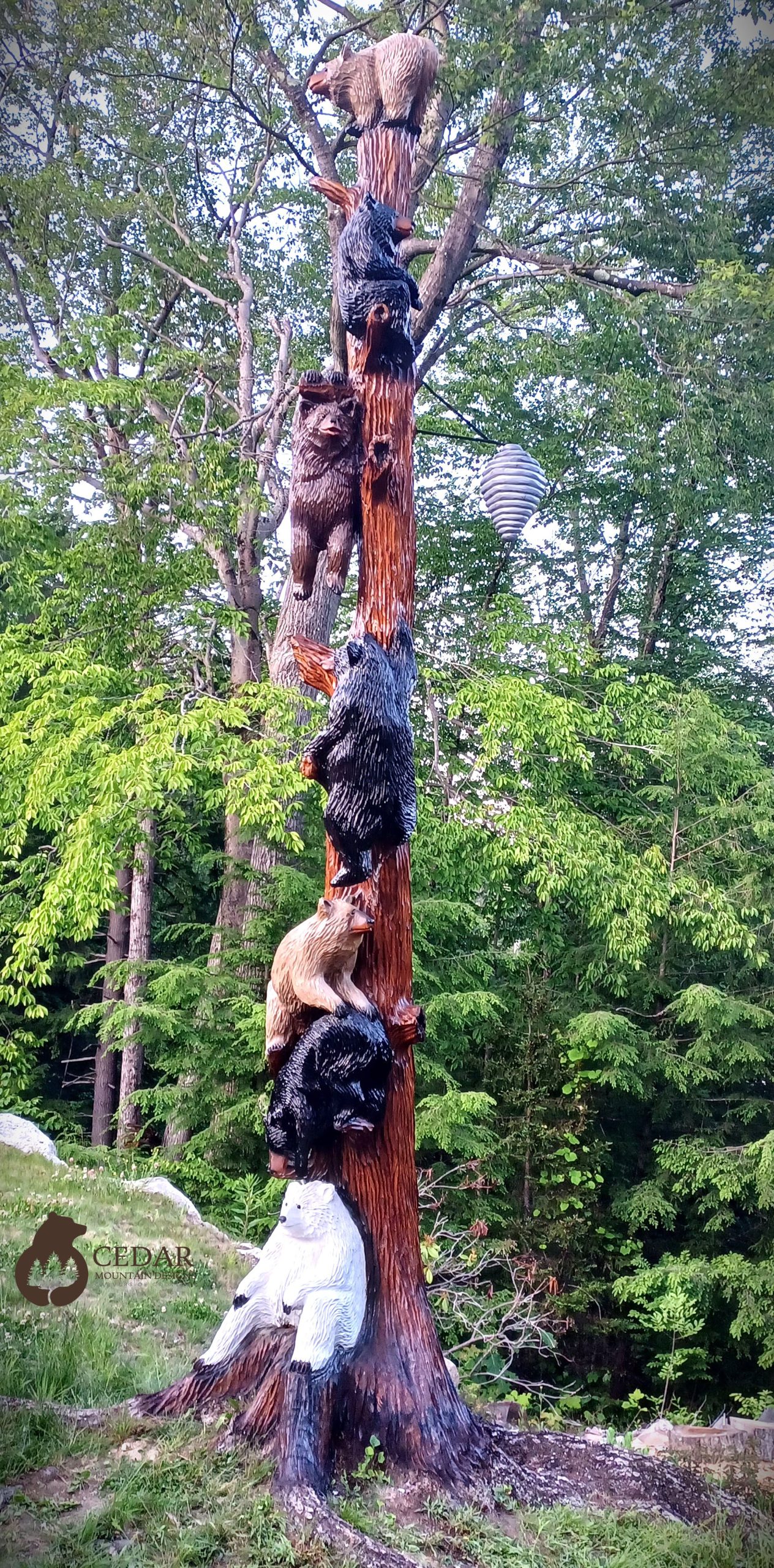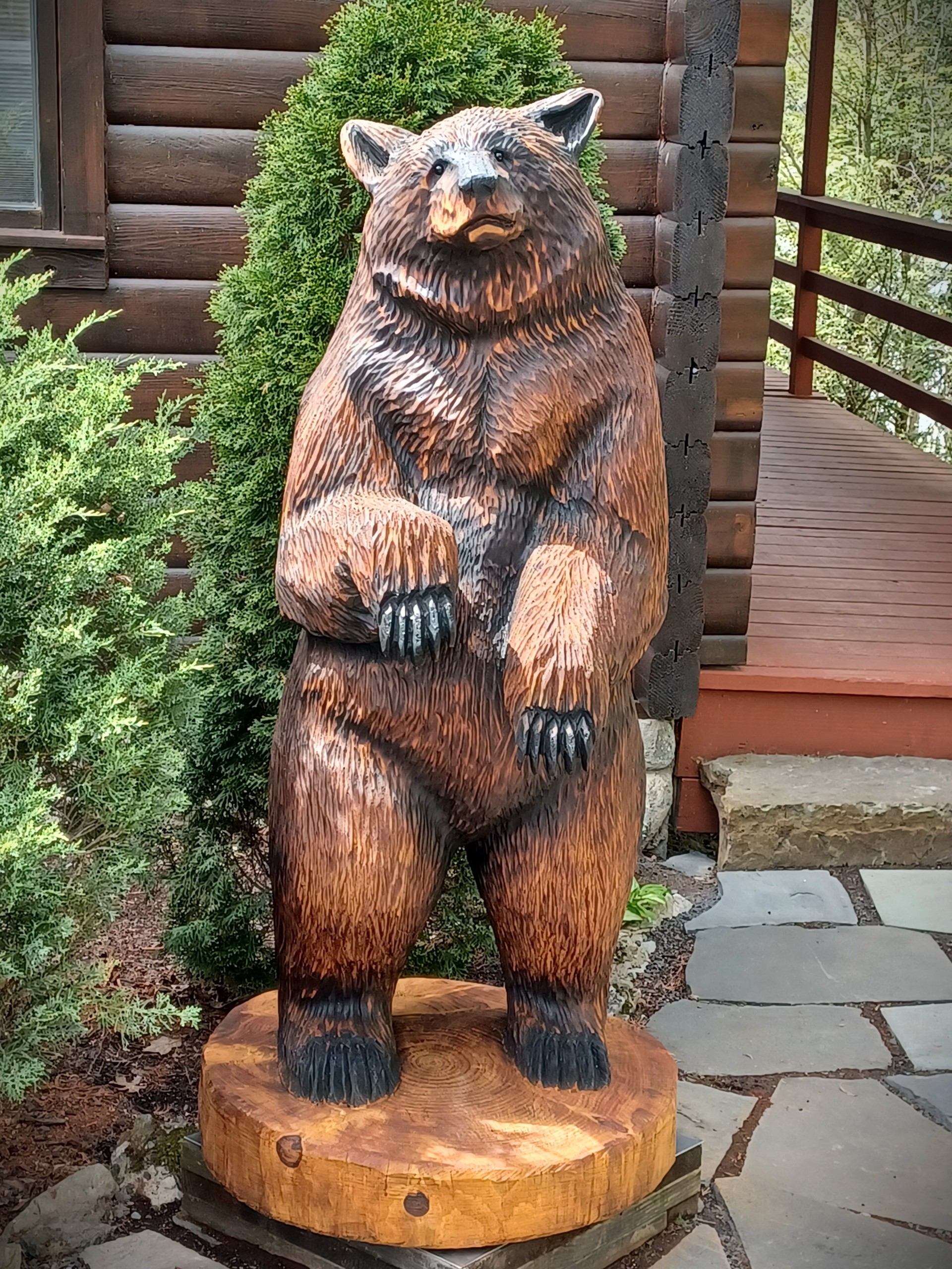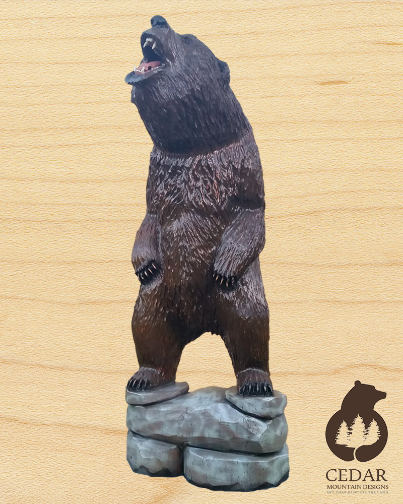 Truly one of our specialties, Cedar Mountain Designs carves lifelike bears with careful attention given to every detail and to their expressions, whether that be realistic, joyful, pleasant… you decide. We carve your vision. Whatever the size and however it’s used, tell us about your own idea, or choose from our favorite pre-carved designs. For all sizes and shapes, we promise to deliver a finished product that encapsulates both the personality you want your sculpture to have and the subtle details that bring your bear to life.
